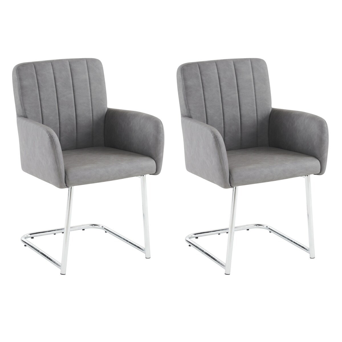 Merax 2er Set Esszimmerstühle, Polsterstühle, mit vertikalen Streifen, Gepolsterter Sessel mit zickzackförmige Metallbeine, PU, grau