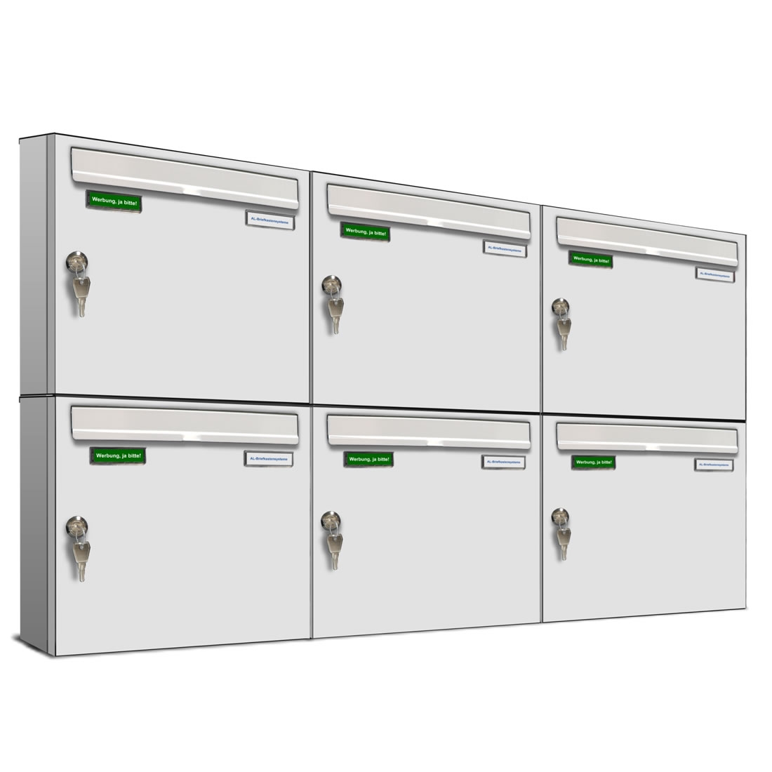 AL Briefkastensysteme 6 x Basic Wand Briefkasten RAL Farbe 9006 Weiss Aluminium für Post A4, wetterfest, Artikelnummer: 431P6EA2P9006