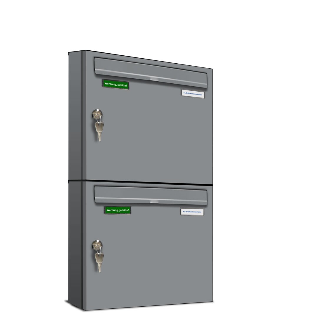 AL Briefkastensysteme 2 x Basic Wand Briefkasten RAL Farbe 9006 Weiss Aluminium für Post A4, wetterfest, Artikelnummer: 431P2EA2P9006