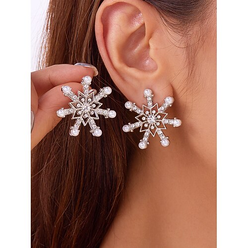 set collana e orecchini a fiocco di neve da donna, oro set di gioielli natalizi in argento per feste, regali invernali abiti da festa