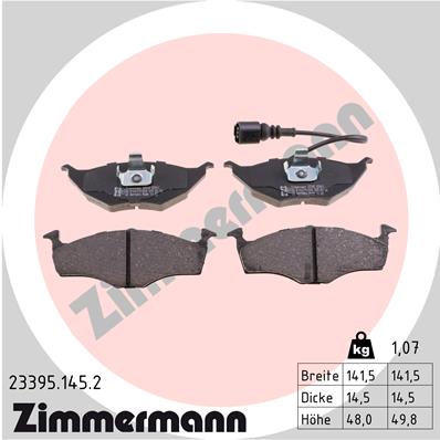 ZIMMERMANN Bremsbelagsatz, Scheibenbremse 23395.145.2 vorne rechts links Foto entspricht Lieferumfang für VAG 8Z0698151