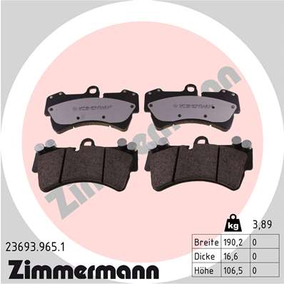 ZIMMERMANN Bremsbelagsatz, Scheibenbremse rd:z 23693.965.1 vorne rechts links Foto entspricht Lieferumfang für PORSCHE VAG 95535193912 95535193913 7L6