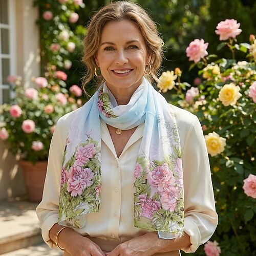 Per donna Sciarpa rettangolare Streetwear Quotidiano Data Grigio Giallo Sciarpa Floreale
