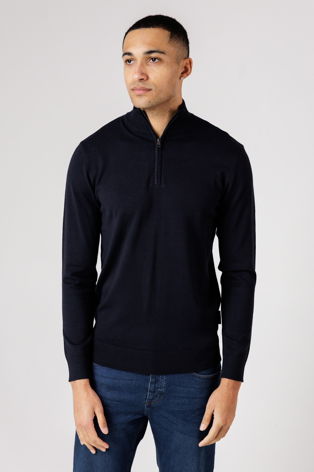 French Connection Mens Dark Blue 1/2 Zip Knitted Jumper - Size Small | French Connection Sale | Discount Designer Brands