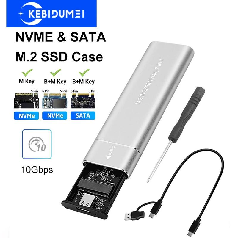 M2 SSD-fodral Dubbelprotokoll NVMe SATA SSD-kabinettadapter 10 Gbps USB 3.1 Typ C Extern M.2-kabinett Stöder M-nycklar B&M-nycklar