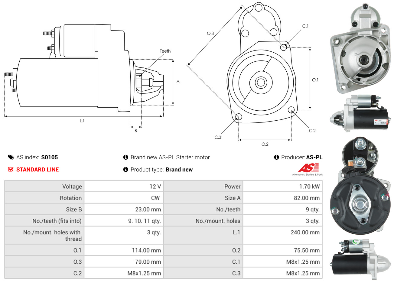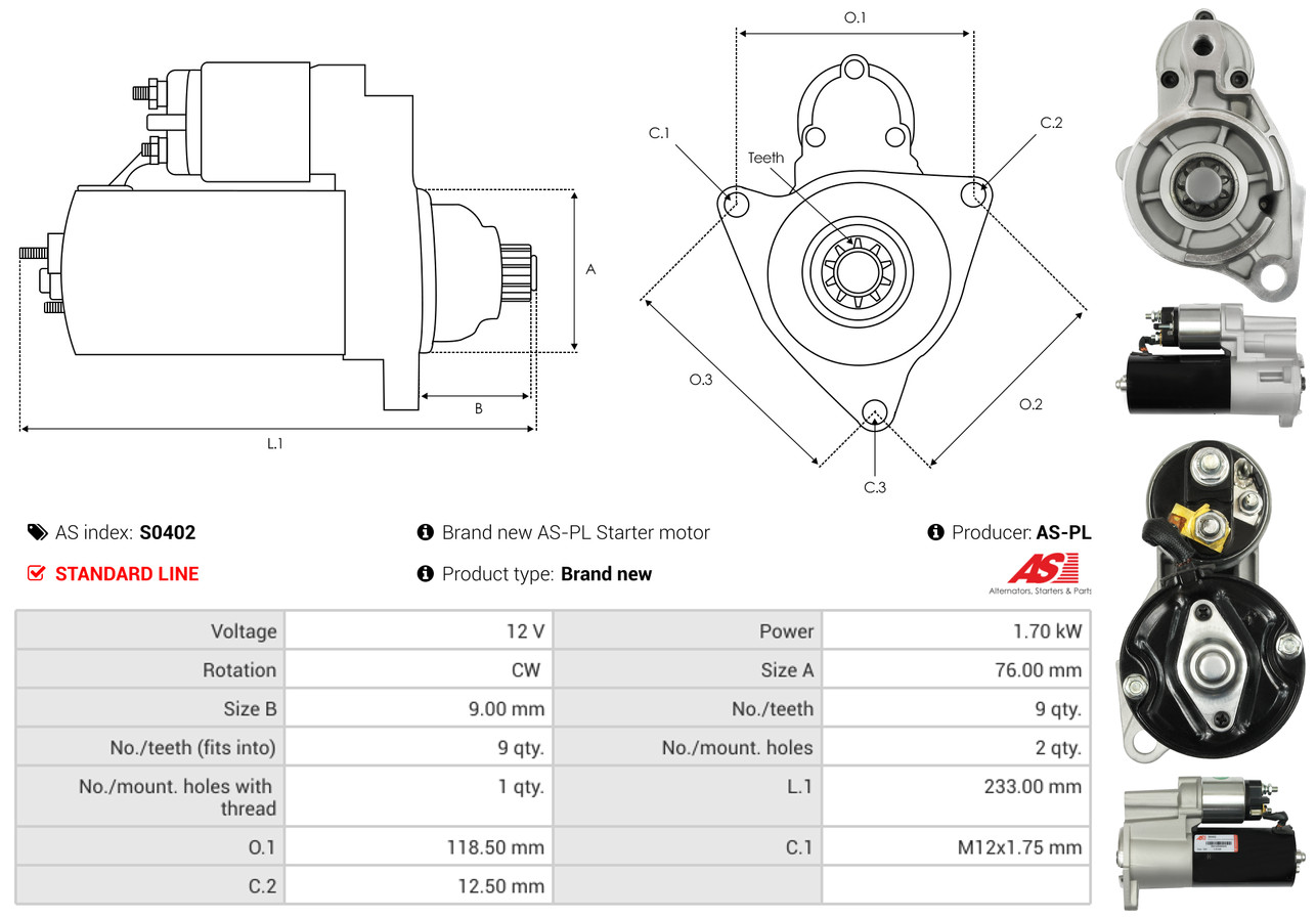 AS-PL Anlasser VW,SKODA,SEAT S9058 6U0911023,6U0911023A,6U0911023AX Starter 6U0911023B,6UO911023AX,441040092196
