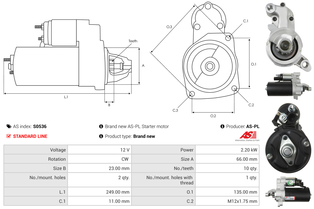 AS-PL Starter S3044 12V für VW L02T911023S 02T911024KX 02Z911023C