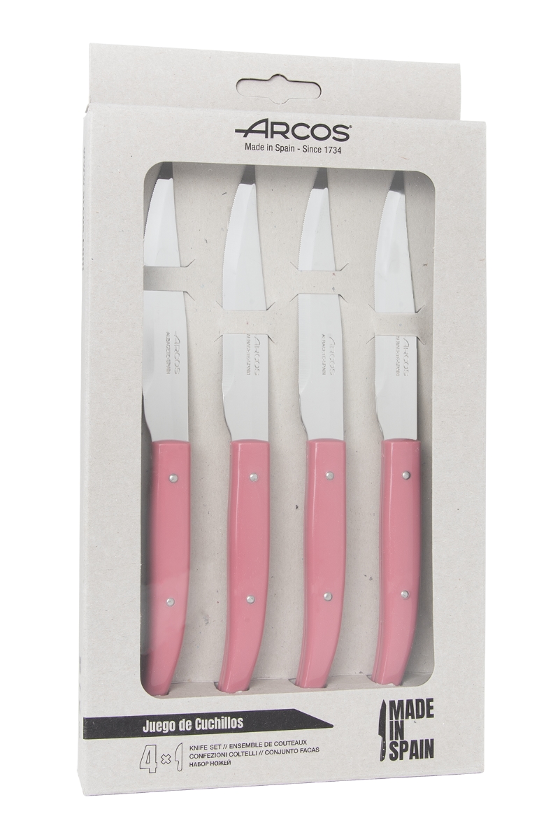 Arcos Serie Steak Basics - Steakmesser-Set 4-teilig - NITRUM Edelstahlklinge von 110 mm - Mikrosägekante - Polypropylengriff - Rosa Farbe