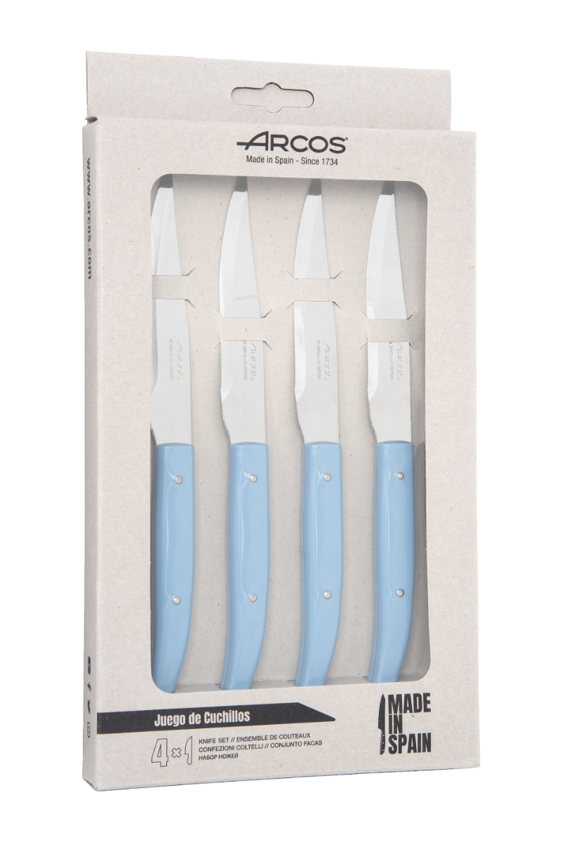 Arcos Serie Steak Basics - Steakmesser-Set 4-teilig - NITRUM Edelstahlklinge von 110 mm - Mikrosägekante - Polypropylengriff - Blaue Farbe