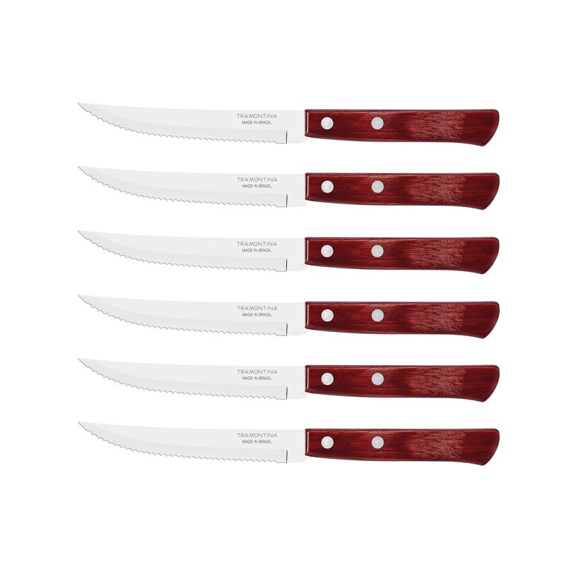 Tramontina STEAK-/PIZZA Messer, 6 Stück, Edelstahl, Holzgriff FSC, spülmaschinenfest