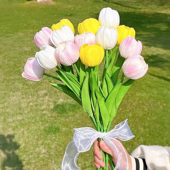 Real Touch Kunstbloem Tulp 35 cm PU Nep Tulpen Levensgetrouwe Fake Tulp met Lange Steel voor Bruiloft Huis Tafel Decoratie Lente Tuin Decoratie
