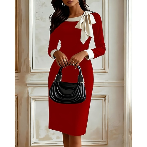 Per donna Abito Midi Abito nero Abito da Cocktail Tubino Elegante Moda Moderno Festa serale Feste Occasione speciale Taglia piccola Semplice Manica Lunga Girocollo Blu Nero Verde militare Borgogna