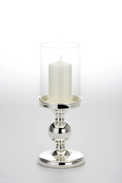 Romantik Windlicht versilbert und anlaufgeschützt mit Klarglas (H 27 x D 11,5 cm)