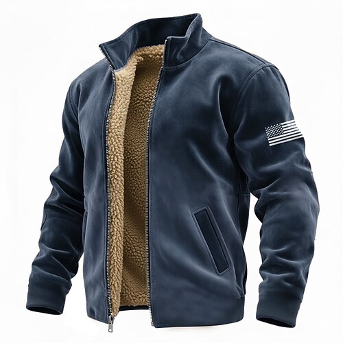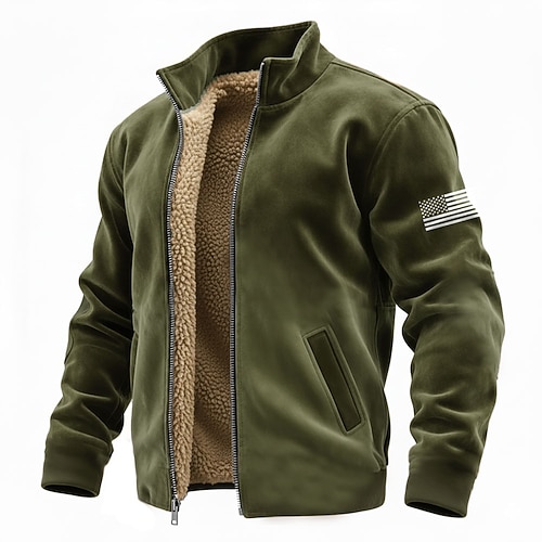 Felpa in Pile della Bandiera Americana per Uomini del 250° Anniversario dell'America Fashion Quotidiana Semplice Casual Collo Alto Zip per Uscita Nera Blu Blu Chiaro Khaki Verde Militare Con Tasca