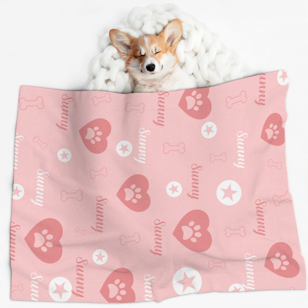 Personalizada Multicolor Cute Pet Paw Heart Pet Blanket with Dotted Backing Birthday Gift for Dog Cat Lover