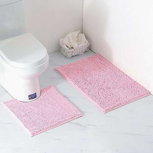 Set di tappeti da bagno in ciniglia, 2 pezzi, antiscivolo, lavabili, extra spessi, morbidi e assorbenti, tappetini da bagno a pelo lungo ad asciugatura rapida per vasca, doccia e WC.