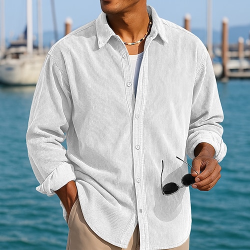 Per uomo Camicia Camicia casual Camicia di Velluto a Coste Camicia con Bottoni Nero Bianco Blu marino Blu Viola Manica Lunga Collo ripiegato All'aperto Streetwear Abbigliamento Vintage Casual