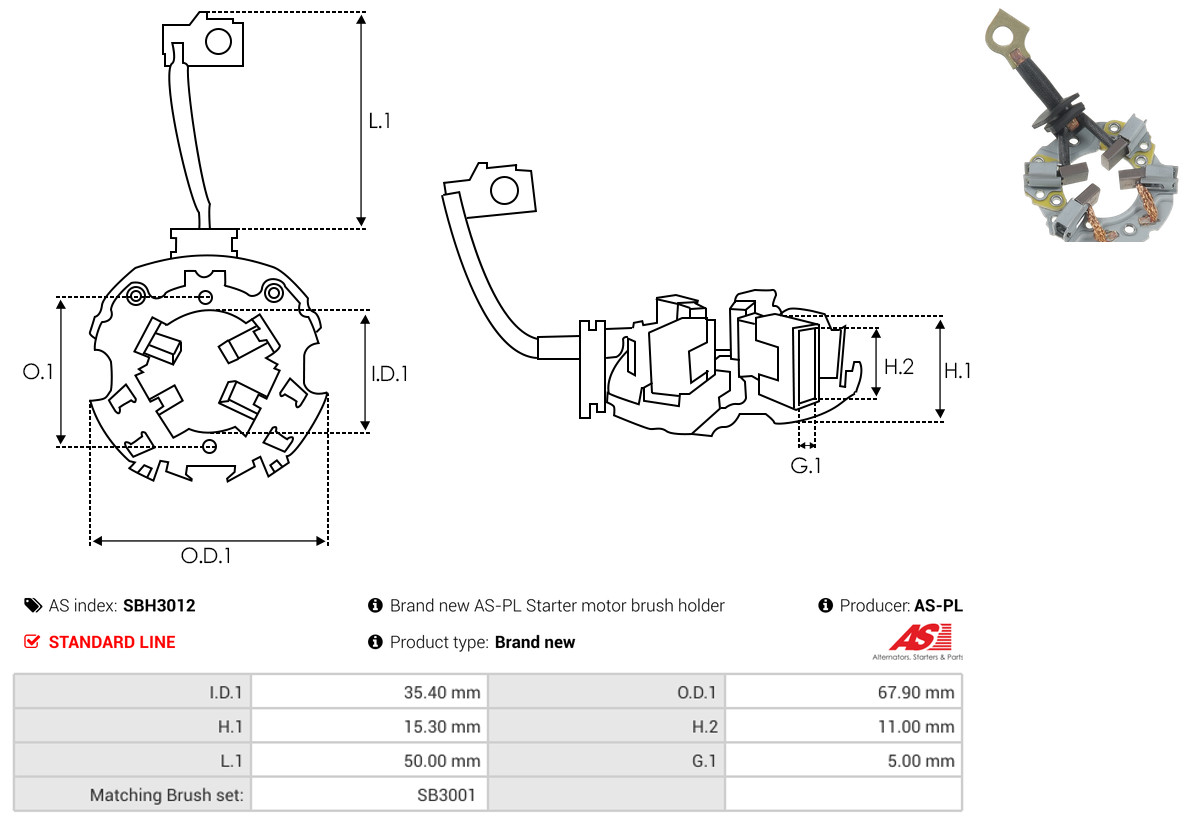 AS-PL Halter, Kohlebürsten Universal 67,90mm für HYUNDAI (BEIJING) 36170-2B100 36170-03100 36170-03200 SBH3012