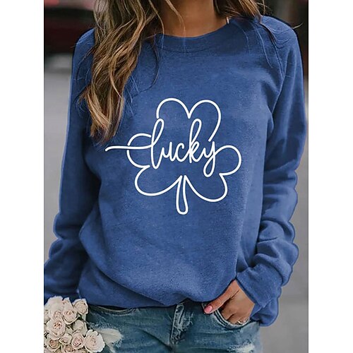 Felpa da donna di St. Patrick grafica trifoglio casual manica lunga colletto rotondo tops regolari stampa per le festività blu e verde primavera inverno