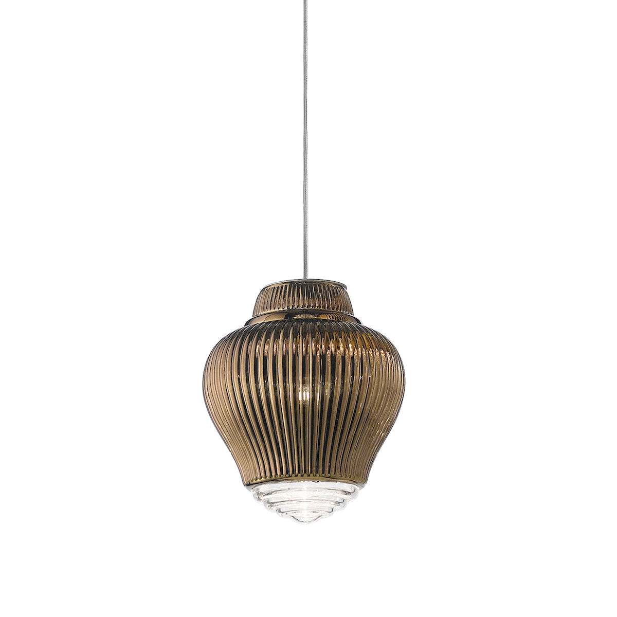 Zafferano Clyde Pendelleuchte aus mundgeblasenem Bronzeglas mit Rigadin-Verarbeitung, grauem Metallgestell und Textilkabeln, Höhe 315 cm, E27