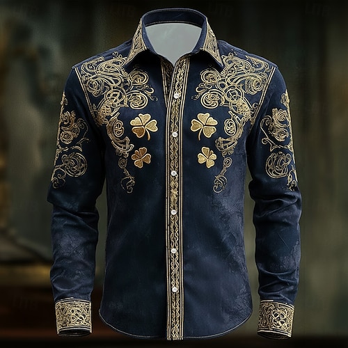 Festa di San Patrizio Per uomo Quadrifoglio Trifoglio Arte celtica Camicia Camicia con Bottoni Manica Lunga Vintage Retrò Ferie Primavera Autunno Collo ripiegato Stampa 3D Camicia tipo lino verde 1