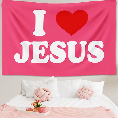 Arazzo pasquale I love Jesus, decorazione murale spirituale per celebrazioni cristiane, perfetto per la Pasqua e per decorazioni domestiche religiose.