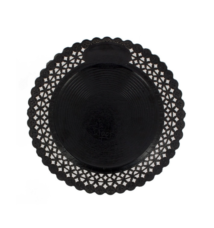 MONOUSO - Pappteller Spitzenpapiere Rund Schwarz 38 cm (1 Stück)
