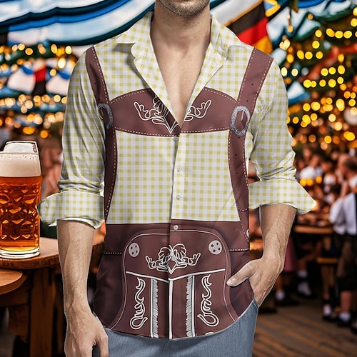 bavarese Monaco Tedesco Camicie Hawaii Camicia Aloha Birra Stampa di Lederhosen Grafico per Per uomo Adulti Stampa 3D per Carnevale Birra Oktoberfest Vacanza Feste
