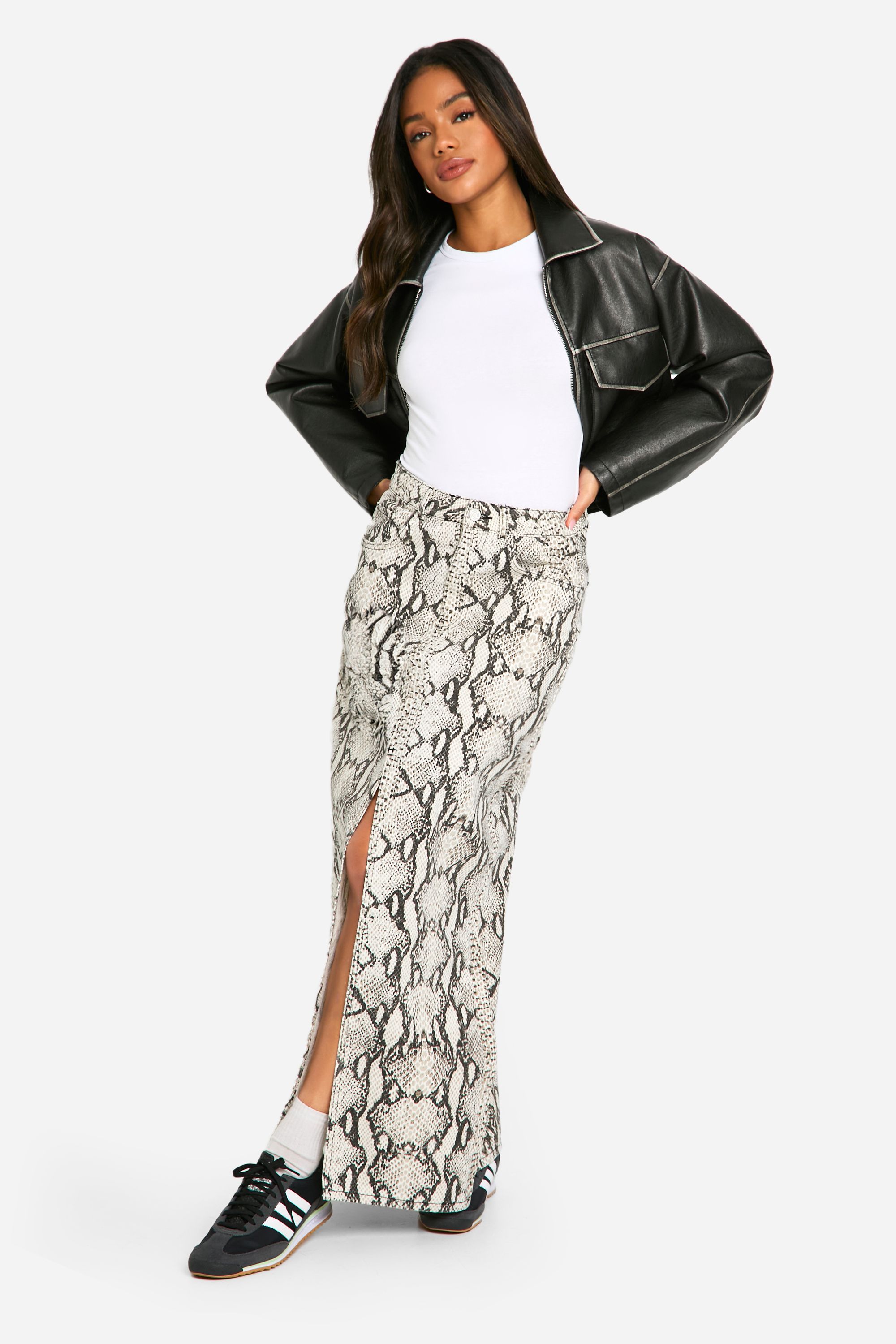 Boohoo Womens Snake Print Denim Midaxi Skirt - Monochrome Multi Cotton - Size 6 UK | Boohoo Sale | Discount Designer Brands