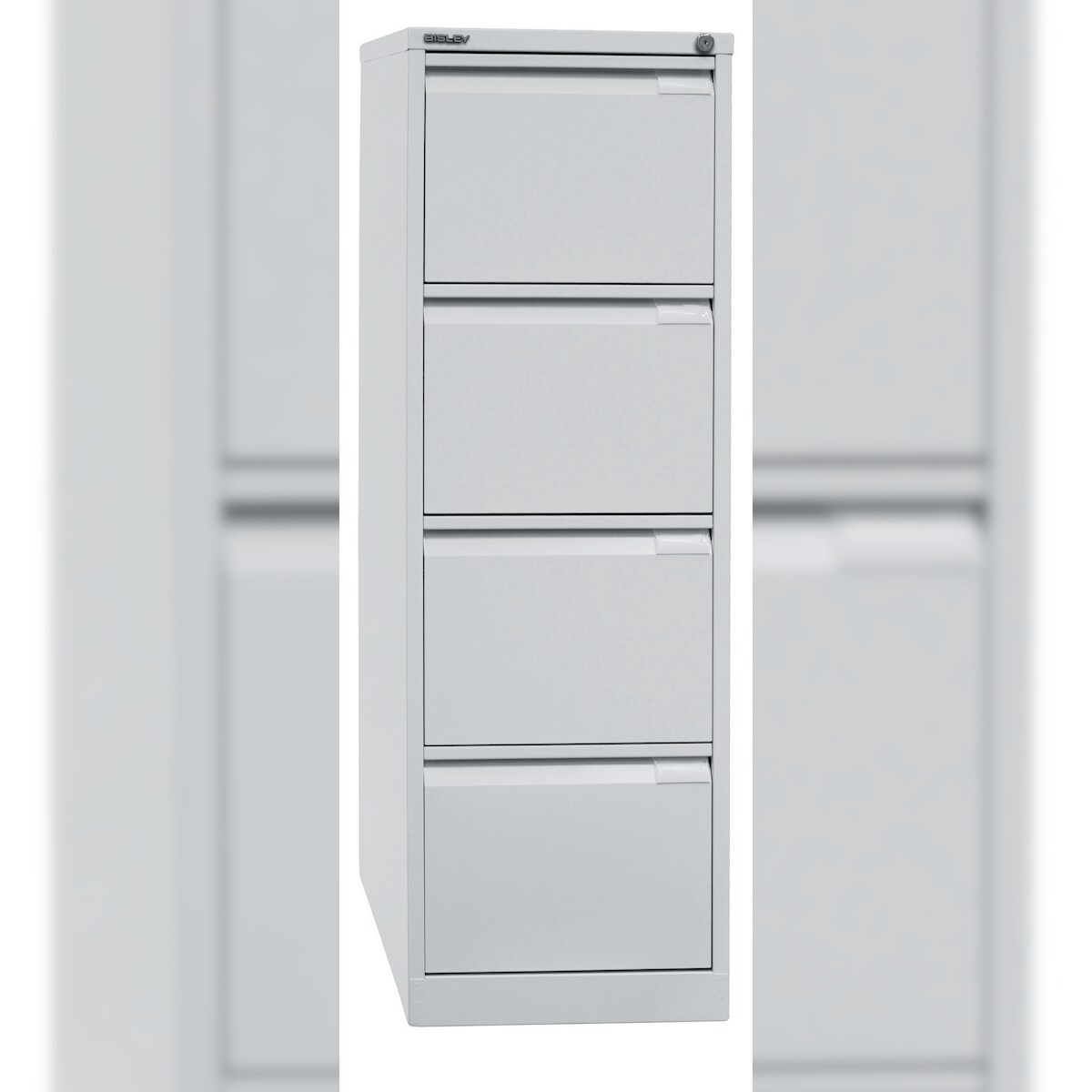 BISLEY Hängeregistraturschrank mit Schloss aus Metall in lichtgrau, 4 Schubladen, einbahnig - Hängeregisterschrank abschließbar, Hängeregistratur für