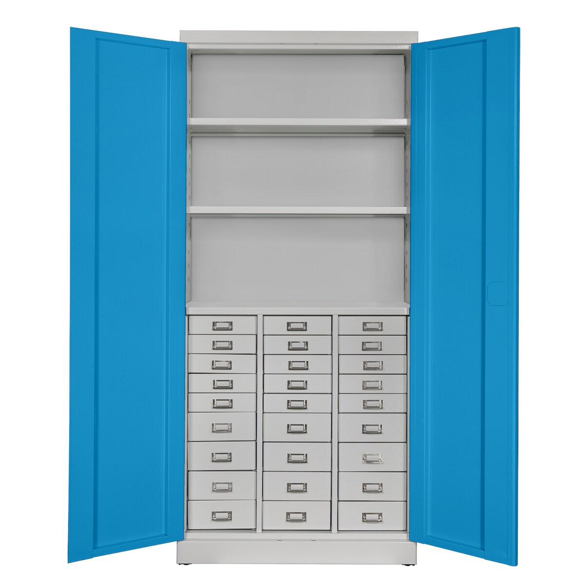 Proregal Schubladenschrank Chinchilla mit 27 Schubladen + 3 Ablageboden | HxBxT 179x80x41cm | Lichtgrau/Lichtblau