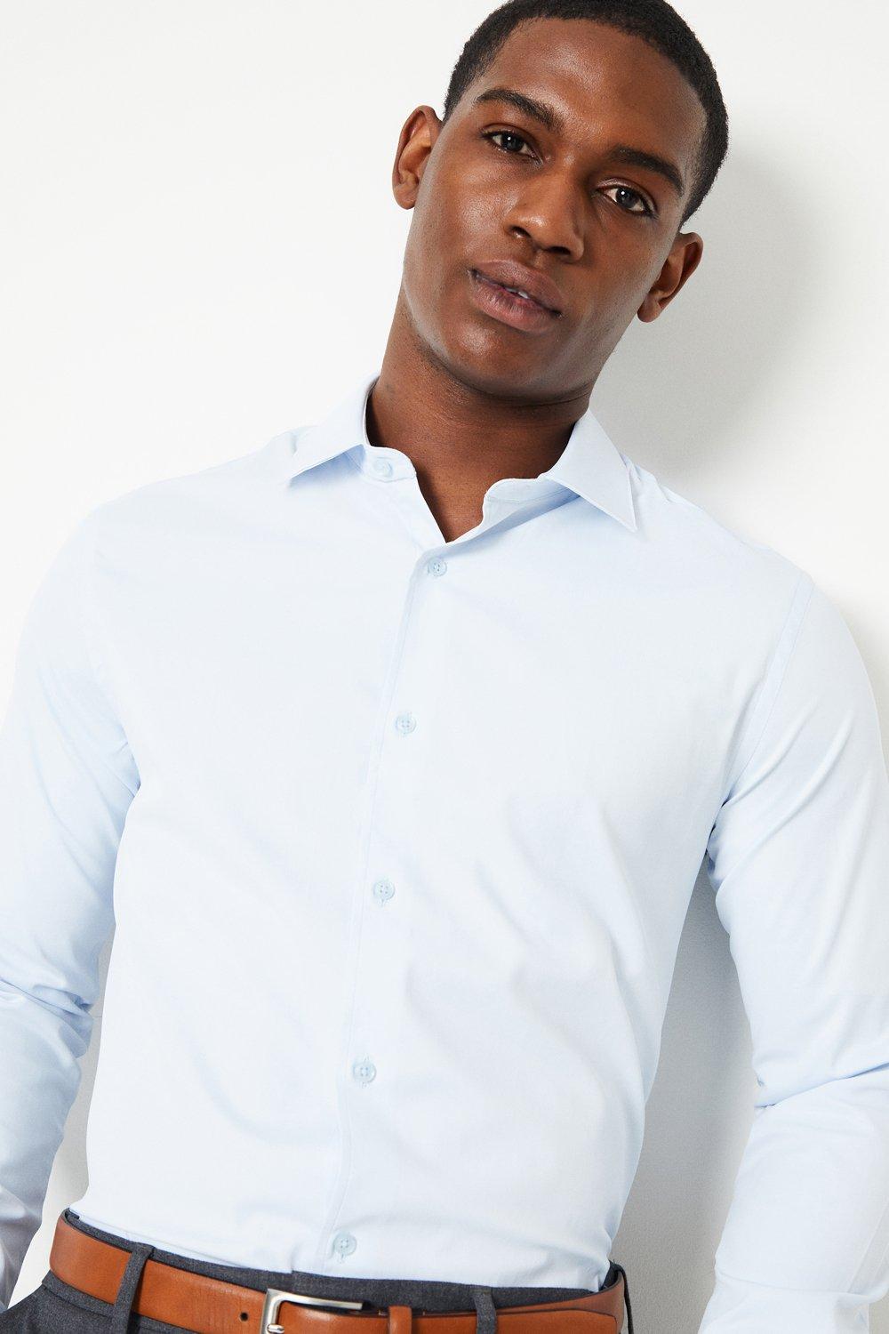 Burton Mens Blue Tailored Fit Long Sleeve Easy Iron Shirt Cotton - Size 17 Inch | Burton Sale | Discount Designer Brands
