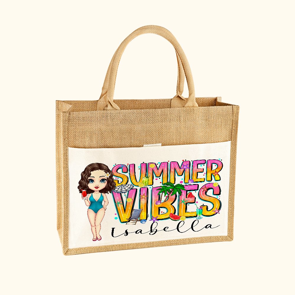 Sac en Toile de Jute Réutilisable Personnalisé avec Personnage et Nom Sac avec Pochette Cadeau Mariage à la Plage pour Femme