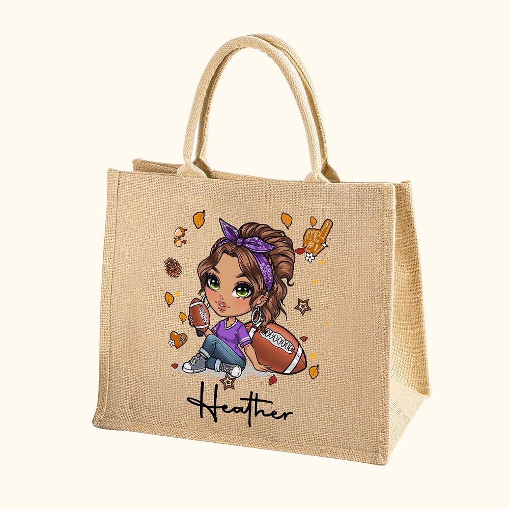 Sac Cabas en Toile de Jute Personnalisé avec Nom et Personnage Cadeau Anniversaire pour Femme
