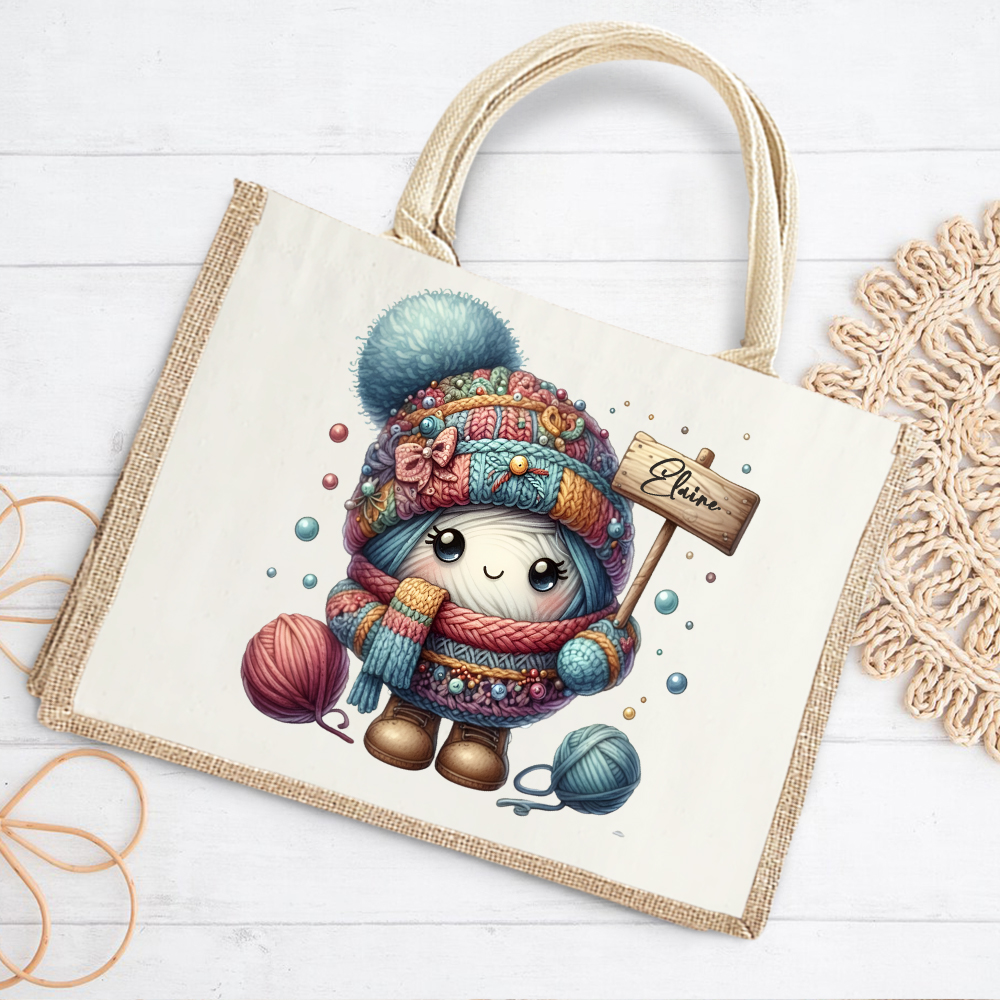 Sac en toile de jute personnalisé avec nom Accessoires de voyage Cadeau d'anniversaire pour les amoureux du tricot Femmes