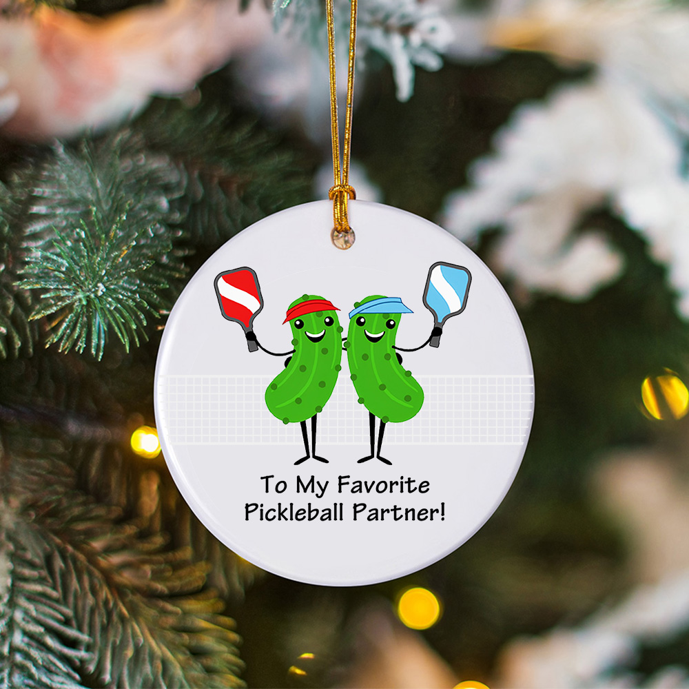 Personalizado Divertido Pepino de dibujos animados Pickleball Jugador de cerámica Ornamento con texto Decoración del árbol de Navidad Deportes Regalo para los amantes de Pickleball