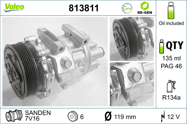 VALEO Kompressor, Klimaanlage AUSTAUSCHTEIL 813811 12V für PEUGEOT FIAT CITROËN LANCIA VOLVO 9686062080 9659749480 9672867780