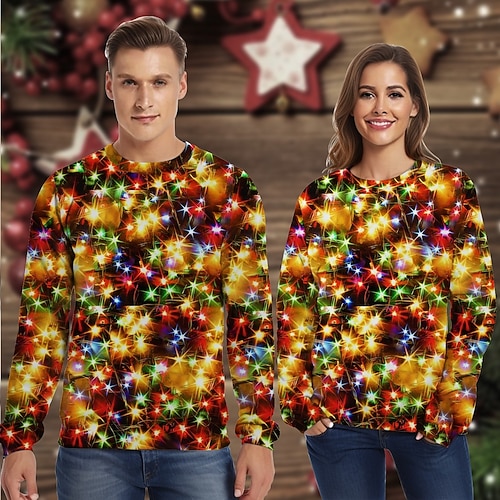 Natale Luci di Natale Pullover Felpa divertente di Natale Stampa 3D 3D Natale Tasca frontale Grafica Per Da coppia Per uomo Per donna Per adulto Natale Mascherata Stampa 3D Feste Festival