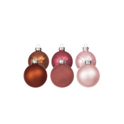 Boules de Noël en verre, vieux rose, rose, cuivre, 3 cm Ø, 6 pièces