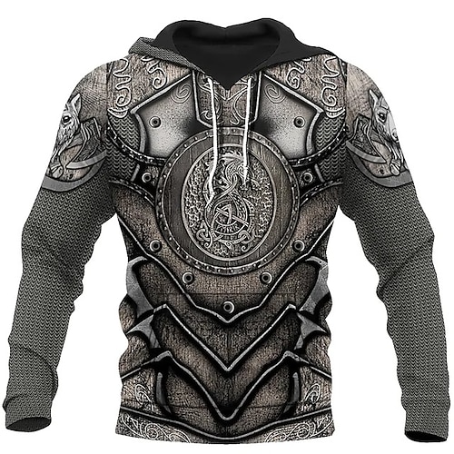 Per uomo Grafico Tribale Armatura Vichingo Felpa con Cappuccio Felpe con cappuccio Felpa Abbigliamento Sportivo Etnico Casual Grande e Alto Azteco occidentale Manica Lunga Con Cappuccio Casuale