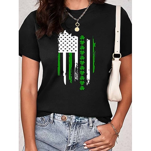 Maglietta Donna St. Patrick's Day 100% Cotone St. Patrick's Day Casual Quotidiana Maniche Corte Nera Estate