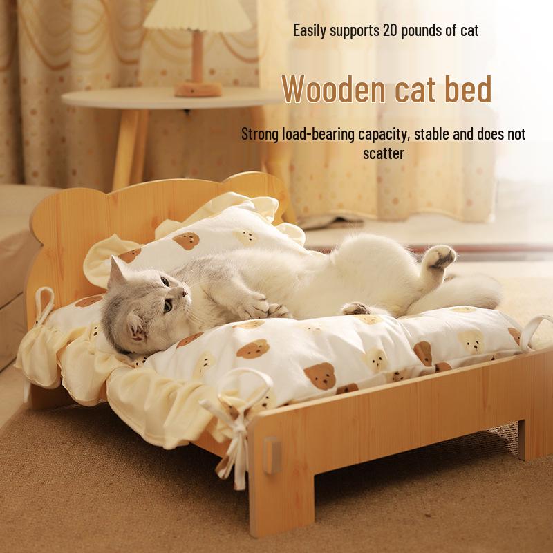 Lit pour animaux de compagnie en bois toutes saisons: Nid douillet pour chats et chiens, petite villa pour animaux de compagnie