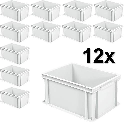 BRB 12x Euro-Stapelbehälter mit 2 Griffleisten, LxBxH 400x300x220 mm, 21 Liter, weiß