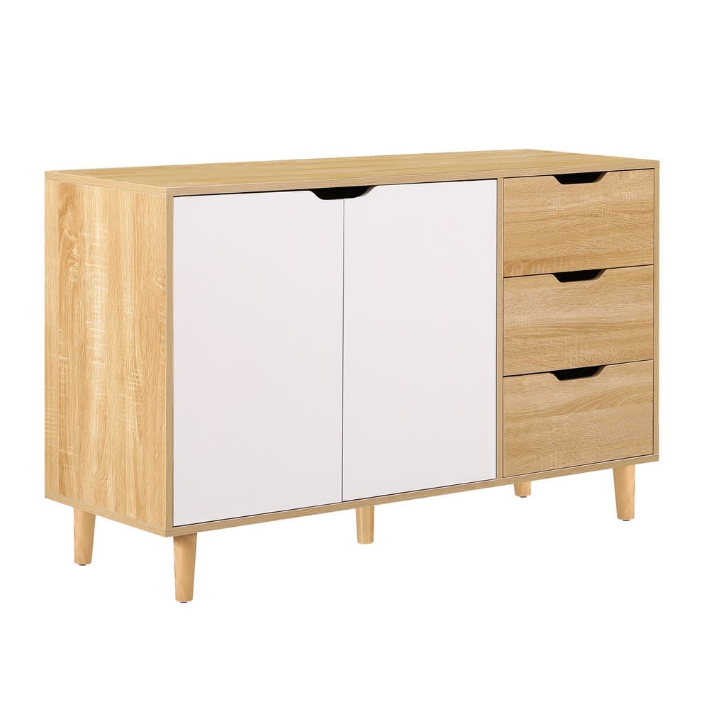 Gl Store Credenza Moderna in Legno con Tre Ante e Ripiani, Design Salvaspazio, 160x35x76 cm, color Legno Naturale Aosom