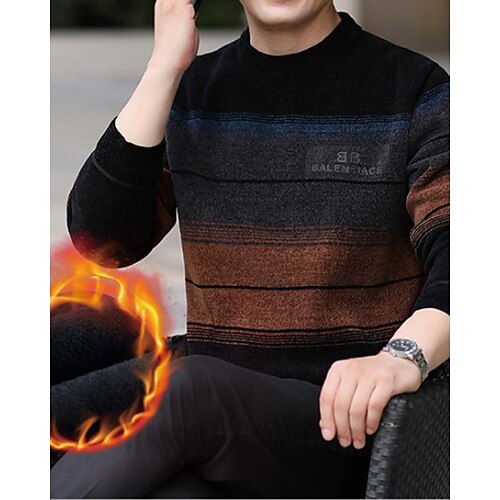 Per uomo Blocco di colori Maglione Maglieria Girocollo Casual Vacanza Streetwear Quotidiano Stampa 3D Lavoro a maglia Tenere al caldo Manica Lunga Primavera Autunno Inverno Rosso Blu Marrone