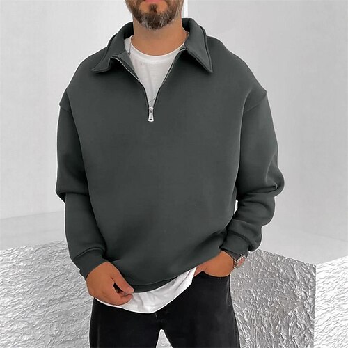 Per uomo Maglia Felpa in pile Maglione Felpa con zip corta Nero Blu marino Cachi Grigio chiaro Grigio scuro Colletto Mao Mezza zip Semplice Patchwork Blocco di colore Sport Outdoor Casuale