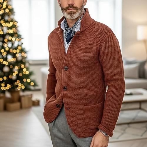 Per uomo Felpa Maglione elegante Cardigan A nido d'ape Maglia Top Regolari Lavorato a maglia Bottonato Collo alla coreana Classico Casuale Abbigliamento Manica corta Primavera Autunno Inverno Blu