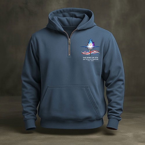 Per uomo Felpa con cappuccio Maglione Felpa con cappuccio e zip corta Blu Nero Vino Blu marino Cammello Con Cappuccio Bandiera Americana Tasca Stampato Quotidiano Sport Outdoor Ferie Streetwear