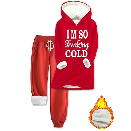 Per donna Caldo Quotidiano Set da due pezzi Tuta Set di Pantaloni Manica Lunga Con Cappuccio Grafico Lettera Coulisse Stampato Casuale Quotidiano Nero Rosa Rosa scuro Autunno Vestibilità comoda
