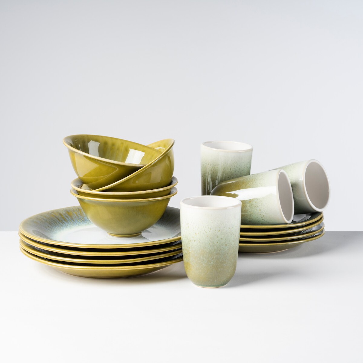 Gipfelstück Kombiservice 16-tlg für 4 Personen mit grünem Rand postsicher, Serie FLUSSUFER